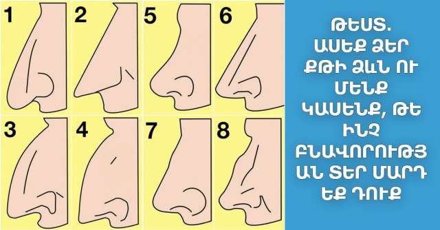 Ձեր քիթը կարող է շատ բան պատմել ձեր բնավորության մասին՝ համաձայն իսրայելացի գիտնական Ավրաամ Տամիրի հետազոտությունների