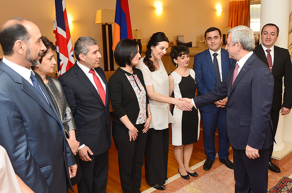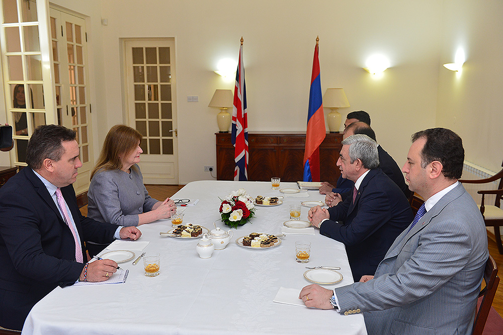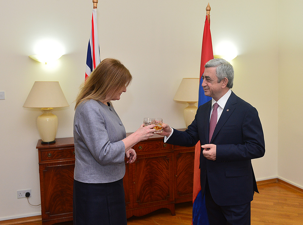 Սերժ Սարգսյանը Մեծ Բրիտանիայի ազգային տոնի կապակցությամբ այսօր այցելել է նաև Հայաստանի Հանրապետությունում Միացյալ Թագավորության դեսպանի կեցավայր` շնորհավորել դեսպան Քեթրին Ջեյն Լիչին և դեսպանատան ամբողջ անձնակազմին, մաղթել Մեծ Բրիտանիայի բարեկամ ժողովրդին բարօրություն և հետագա բարգավաճում: Նախագահը համոզվածություն է հայտնել, որ Միացյալ Թագավորության բնակչության համար այս տոնը յուրահատուկ խորհուրդ ունի՝ բրիտանացիները ի դեմս Նորին Մեծություն Թագուհու տեսնում են ոչ միայն պետության ամենաերկար գահակալած միապետի, այլև խոհեմ և հոգատար առաջնորդի, ում գործունեությունը տասնամյակներ շարունակ նպաստել է Մեծ Բրիտանիայի հեղինակության բարձրացմանը: