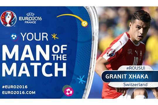 Հանդիպման լավագույն ֆուտբոլիստ է ճանաչվել Շվեյցարիայի հավաքականի խաղացող Գրանիտ Հական: Այդ մասին հայտնում է մրցաշարի պաշտոնական կայքը:
