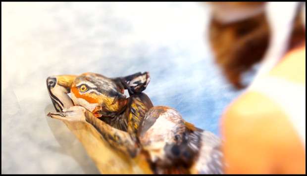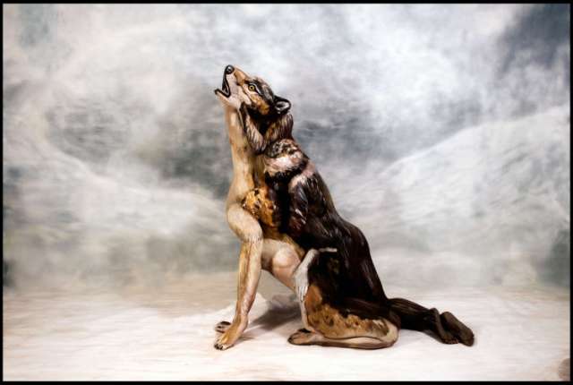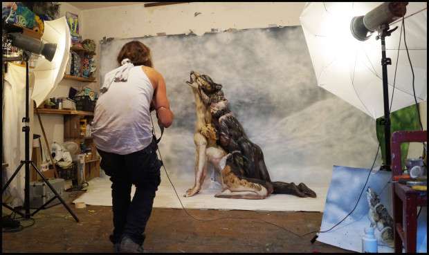 Այս պատկերը ստանալու համար նկարչից 8 ժամ է պահանջվել։ Յոհանես Ստոտտերը օգտագործել է միայն ներկեր և սեփական երևակայությունը։ Նա երկար ժամանակ մտածում էր, թե ինչպես իրականացնի այս նախագիծը և վերջապես կանգ առավ երեք մերկ մոդելներով տարներակի վրա։ Նրա խոսքերով` «գայլը» իր լավագույն ստեղծագործությունն է։