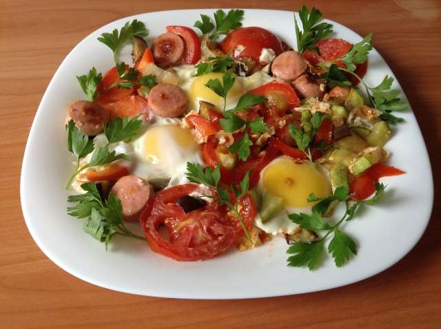 Լոլիկով ու նրբերշիկով ձվածեղ