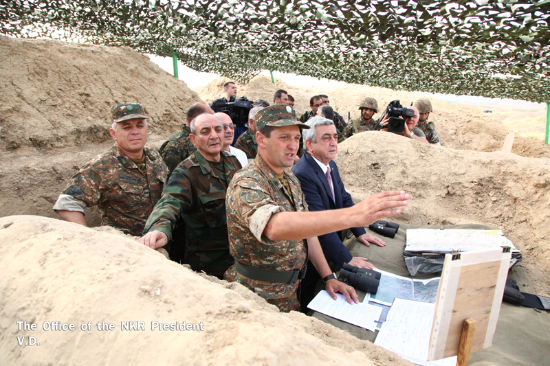 Հանրապետության հարավային թևում Արցախի Հանրապետության Նախագահ Բակո Սահակյանը, Հայաստանի Հանրապետության Նախագահ Սերժ Սարգսյանը և ԼՂՀ երկրորդ Նախագահ Արկադի Ղուկասյանն այցելել են սահմանագծի մի շարք հատվածներ, տեղում ծանոթացել զինվորների ծառայության ընթացքին և տիրող իրավիճակին: