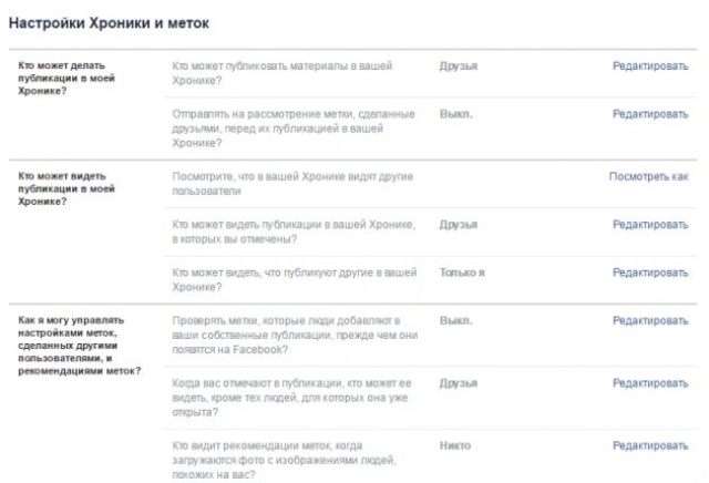 Այդուհետև կարող եք ընտրել «Хроника и метки» հրահանգը: Այստեղ դուք կարող եք նշել այն անձանց, ովքեր կարող են դիտել ձեր գրառումները: Պետք է ուշադրություն դարձնել հատկապես 4-րդ, 5-րդ և 7-րդ կետերին: