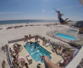 Ներկայացնում ենք մի տեսանյութ, որի հերոսը բարձրահարկ հյուրանոցի տանիքից նետվում է լողավազանի մեջ և ողջ ընթացքն իր գլխին ամրացրած GoPro տեսախցիկով նկարահանում: