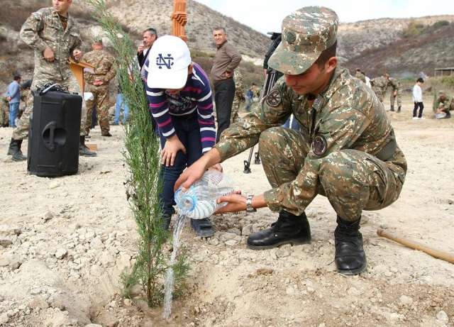 Միջոցառմանը ներկա հյուրերի, բարերարների, բարձրաստիճան զինվորականների ներկայությամբ հուշակոթողի բացման հանդիսավոր արարողության վերջում մեր զինվորներն արցախցի դպրոցականների հետ միասին հուշաքարի տարածքում տնկիներ տեղադրեցին՝ ի նշան սերունդների շարունակականության: