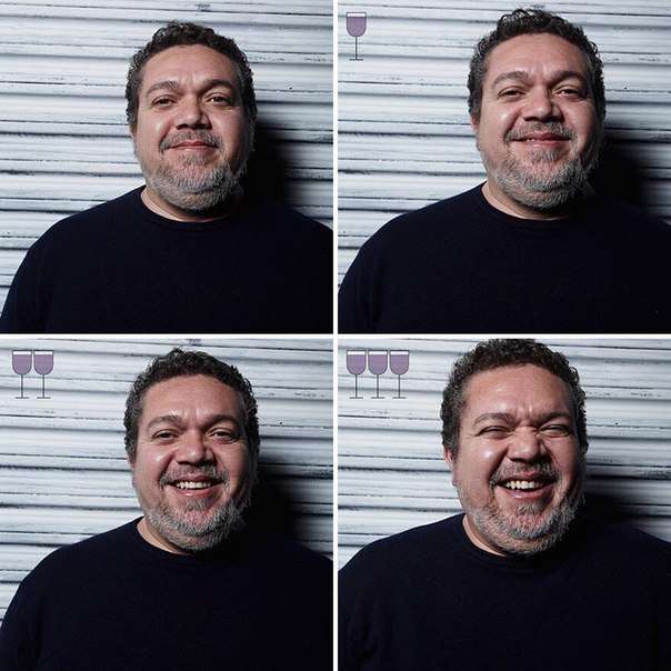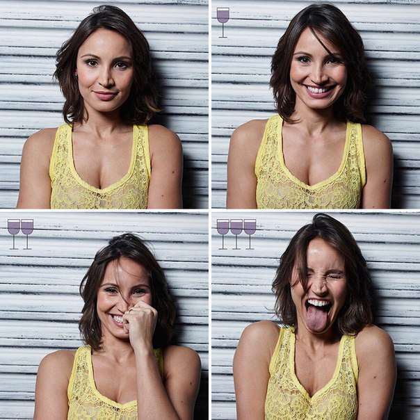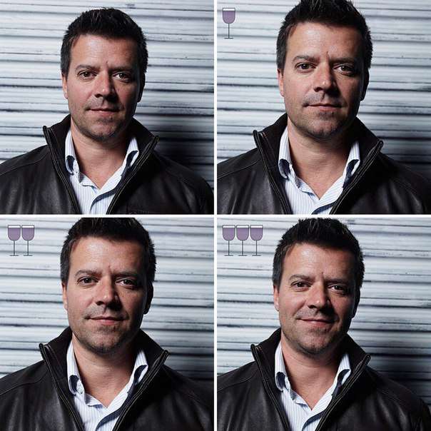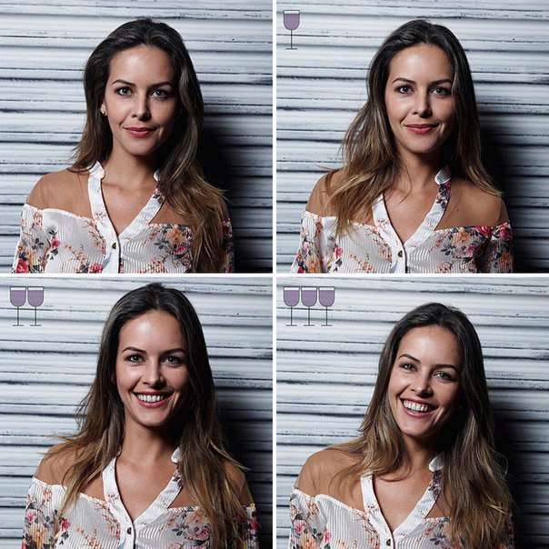 Բրազիլացի մի լուսանկարիչ որոշել է հետաքրքիր փորձարկում անցկացնել: Նա լուսանկարել է իր ընկերներին երեք բաժակ գինի խմելուց առաջև հետո: Այժմ ինքներդ կարող եք տեսնել, թե ինչ տեսք եք ունենում, երբ մի փոքր ալկոհոլի ազդեցության տակ եք լինում: