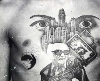 Դոլարների, երկնաքերների ու հրացանի պատկերումը մարմնի վրա նշանակում է սեր ամերիկյան մաֆիային բնորոշ կենսակերպի նկատմամբ: