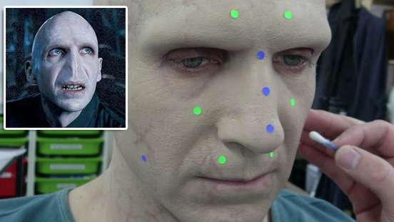 Վոլդեմորտին «անքիթ» դարձնելու համար Ռեյֆ Ֆայնսի դեմքին գույնզգույն կետեր էին արել, որոնց հիման վրա համակարգչային էֆեկտներով պետք է հեռացվեր քիթը: Իսկ մնացած բոլոր արտաքին հատկանիշները տաղանդավոր դիմահարդարների աշխատանքներն են եղել: