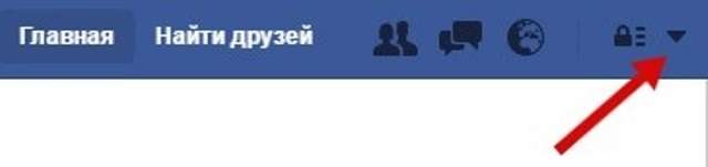 1. Սեղմեք facebook-ի աջ անկյունում երևացող սլաքը, բացեք «Settings» («Настройки», «Կարգավորումներ») հատվածը։