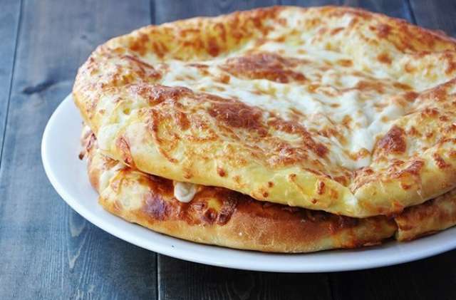 7. Խփել խաչապուրիների՝ մինչև ոսկեգույն դառնալը տաք թավայի մեջ: Պատրաստի խաչապուրիների վրա բուսայուղ քսել: