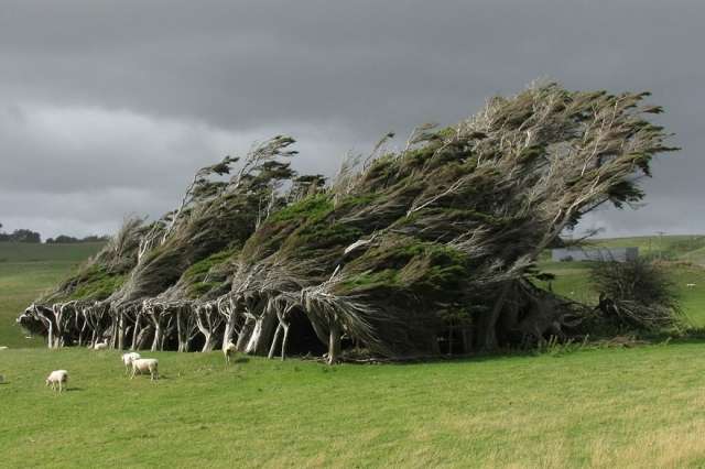 Քամուց ճկված ծառեր Նոր Զելանդիայում