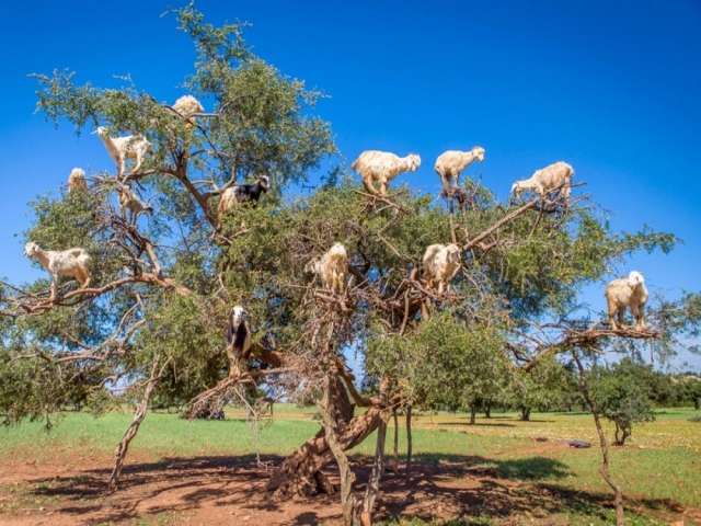 Այս տեսարանը շատ տարածված է Մարոկկոյում. այծերը բարձրանում են այս ծառի վրա դրա պտուղները ուտելու համար։