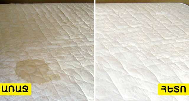 Ձեռքի տակ ունենալով մինիմալ պարագաներ՝ կարելի է ազատվել ներքնակի վրայի հետքերից՝ մեզի, արյան, գինու:
