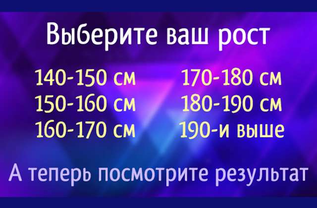 5. 170-180 սմ։ Անկախ եք, ինքնավստահ, սիրում եք գերակայել։ Ապրում եք «ավելի լավ է՝ ինքս անեմ» կարգախոսով։ Սովոր եք հույս դնել միայն ինքներդ ձեզ վրա։ Գիտեք, թե ինչ եք ուզում կյանքից, և ամբողջ ուժով շարժվում եք այդ ուղղությամբ։ Չեք վախենում դժվարություններից։ Մոտ մարդկանցից անկեղծություն եք սպասում։ Չեք վախենում լսել ճշմարտությունը և կարծում եք, որ դառը ճշմարտությունը գերադասելի է քաղցր ստից։