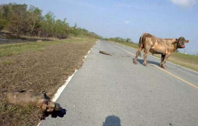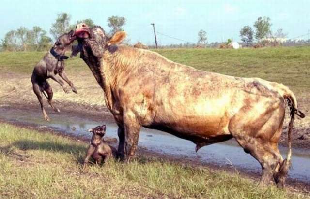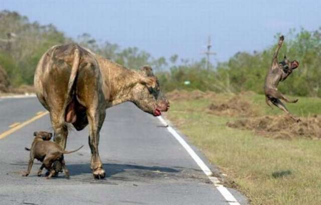 Ֆենիքս, Ալաբամա նահանգ: Երկու անտուն պիտբուլ ինքնուրույն էին իրենց կերը հայթայթում: Եվ ահա նրանց ճանապարհին նախիրից հետ մնացած մի ցուլ հանդիպեց: Ավելի լավ է՝ չհանդիպեր... Միամիտ շները որոշեցին ցլի միս համտեսել, բայց արդյունքում կյանքով վճարեցին այդ փորձի համար.