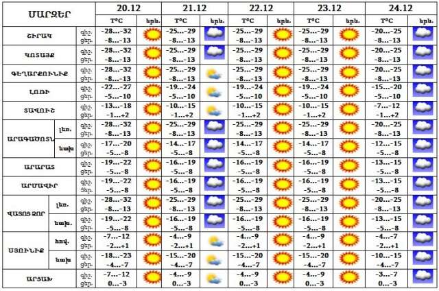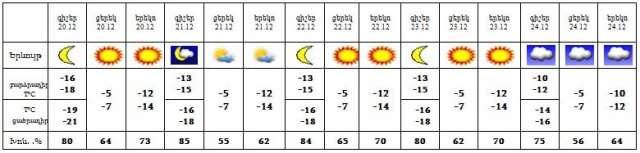 Դեկտեմբերի 20-24-ը սպասվում է առանց տեղումների եղանակ: