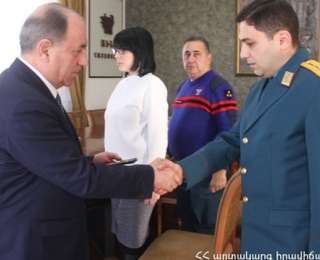 ՀՀ ԱԻ նախարարի ժամանակավոր պաշտոնակատար Հայկարամ Մխիթարյանի մեկ այլ հրամանով` Փրկարար ծառայության Նաիրիտ գործարանի պահպանության հատուկ հրշեջ ջոկատի խմբի հրամանատար Լևոն Փալայանին շնորհվել է փ/ծ մայորի կոչում: