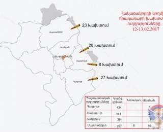 Փետրվարի 12-ին և լույս 13-ի գիշերը ղարաբաղա-ադրբեջանական հակամարտ զորքերի շփման գծում արձանագրվել է լարվածության աճ: Հակառակորդը Դ-44 տիպի հրանոթներից, ականանետերից, նռնականետերից ու տարբեր տրամաչափի հրաձգային զինատեսակներից հրադադարի պահպանաման ռեժիմը խախտել է շուրջ 80 անգամ, որի ընթացքում, հայ դիրքապահների ուղղությամբ արձակել է ավելի քան 950 կրակոց: Ադրբեջանական զինուժը արևելյան ուղղությամբ կիրառել է Դ-44 տիպի հրանոթներ՝ արձակելով 13 արկ, իսկ հյուսիսային և հարավային ուղղություններոփվ՝ 60 և 82 միլիմետրանոց ականանետեր ու նռնականետեր՝ ընդհանուր առմամբ արձակելով 49 արկ, որից 41-ը ականանետերից, 8-ը՝ նռնականետերից: