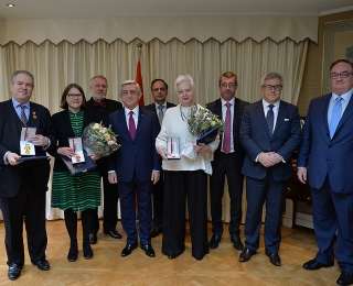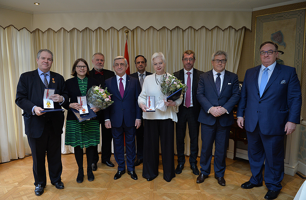 Նախագահ Սերժ Սարգսյանը Բրյուսելում այսօր հանդիպում է ունեցել Եվրոպական խորհրդարանի մի խումբ պատգամավորների հետ: Հանրապետության Նախագահը հանդիպման առիթով շնորհավորել և խորհրդարանականներին է հանձնել Հայաստանի Հանրապետության պետական բարձր պարգևները, որով պատգամավորները անցյալ տարի պարգևատրվել էին Հանրապետության Նախագահի կողմից: Մասնավորապես` Հայաստանի Հանրապետության և Եվրոպական միության միջև խորհրդարանական համագործակցության ընդլայնման գործում ներդրած նշանակալի ավանդի համար Եվրոպական խորհրդարանի փոխնախագահ, «Եվրանեստ» խորհրդարանական վեհաժողովի փոխնախագահ Ռիշարդ Չարնեցկին պարգևատրվել է Մխիթար Գոշի մեդալով: Այս պարգևին են արժանացել նաև Եվրոպական խորհրդարանի արտաքին հարաբերությունների հանձնաժողովի և «Եվրանեստ» խորհրդարանական վեհաժողովում պատվիրակության անդամներ Յացեկ Սարիուս-Վոլսկին, Կնուտ Ֆլեկենշտեյնը, Եվրոպական խորհրդարանի անդամ, Եվրոպական խորհրդարանում Արցախի հետ բարեկամության խմբի ղեկավարՖրանկ Էնգելը, ԵԽ արտաքին հարաբերությունների հանձնաժողովի անդամ, Հայաստան-Եվրամիություն խորհրդարանական համագործակցության հանձնաժողովի անդամ, «Եվրանեստ» խորհրդարանական վեհաժողովում պատվիրակության անդամ Յարոմիր Շտետինան` Հայոց ցեղասպանության միջազգային ճանաչման գործում ներդրած նշանակալի ավանդի համար, Հայաստան-ԵՄ խորհրդարանական համագործակցության հանձնաժողովի անդամ, «Եվրանեստ» խորհրդարանական վեհաժողովի համանախագահ Հեյդի Հաուտալան` Հայաստանի Հանրապետության և Եվրոպական միության միջև խորհրդարանական համագործակցության ամրապնդման, Հայոց ցեղասպանության միջազգային ճանաչման գործում ներդրած նշանակալի ավանդի համար: Մխիթար Գոշի մեդալով պարգևատրվել է նաև Եվրոպական խորհրդարանում ԵՄ-Հայաստան բարեկամության խմբի նախագահ Էլենի Թեոխարուսը, ով Հայաստանի պետական այդ բարձր պարգևին արժանացել է Հայ-կիպրական բարեկամական կապերի զարգացման, Հայաստանի Հանրապետության և Եվրոպական միության միջև խորհրդարանական համագործակցության ընդլայնման գործում ներդրած նշանակալի ավանդի համար: Եվրոպական խորհրդարանի արտաքին հարաբերությունների հանձնաժողովի անդամ Չարլզ Թաննոքը պարգևատրվել է Երախտագիտության մեդալով` Հայոց ցեղասպանության միջազգային ճանաչման գործում ներդրած նշանակալի ավանդի համար: Կայքում տեղ գտած մտքերն ու տեսակետները հեղինակի սեփականությունն են և կարող են չհամընկնել BlogNews.am-ի խմբագրության տեսակետների հետ: