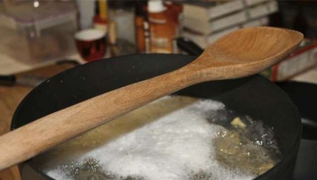 Կաթսայի վրա փայտեր գդալ դրեք, որպեսզի եռացող ջուրը չթափվի։