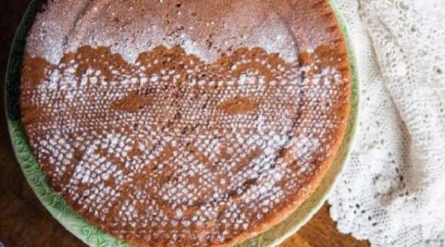 Շաքարի փոշի լցրեք տորթի վրա՝ գործվածքի վրայից և հետաքրքիր նախշ ստացեք։