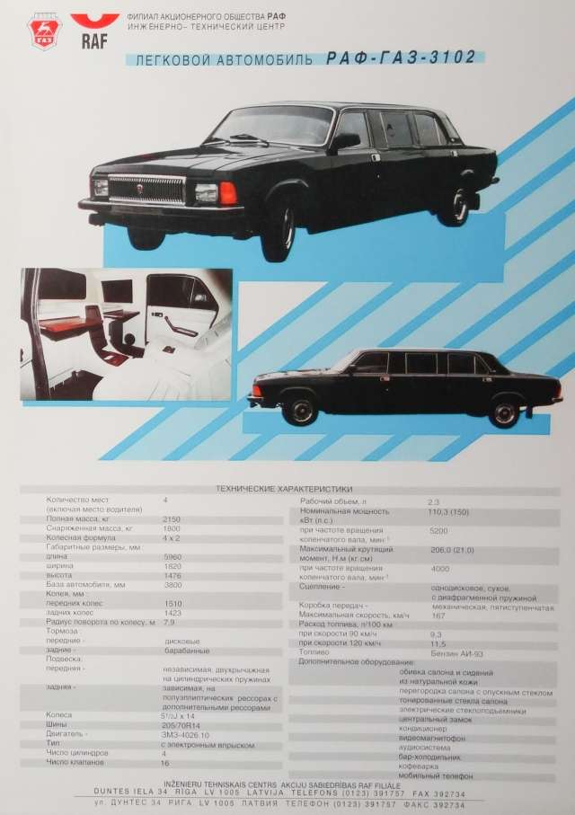 Սա 90-ականների արտադրության թերևս ամենահարմարավետ ու տեխնիկապես հագեցված կառավարական մեքենան էր: Հետաքրքրական է, որ РАФ-ГАЗ-3102-ը հագեցած էր նաև օդափոխիչով, վիդեոնվագարկիչով, սրճեփով և մինի բարով: