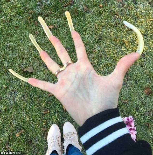16-ամյա Սիմոնա Թեյլորը ապրում է Գերմանիայում: 2014 թվականի օգոստոս ամսից աղջնակը որոշեց չկտրել եղունգները: Երեք տարի անց դրանք հասան 10 սմ երկության: