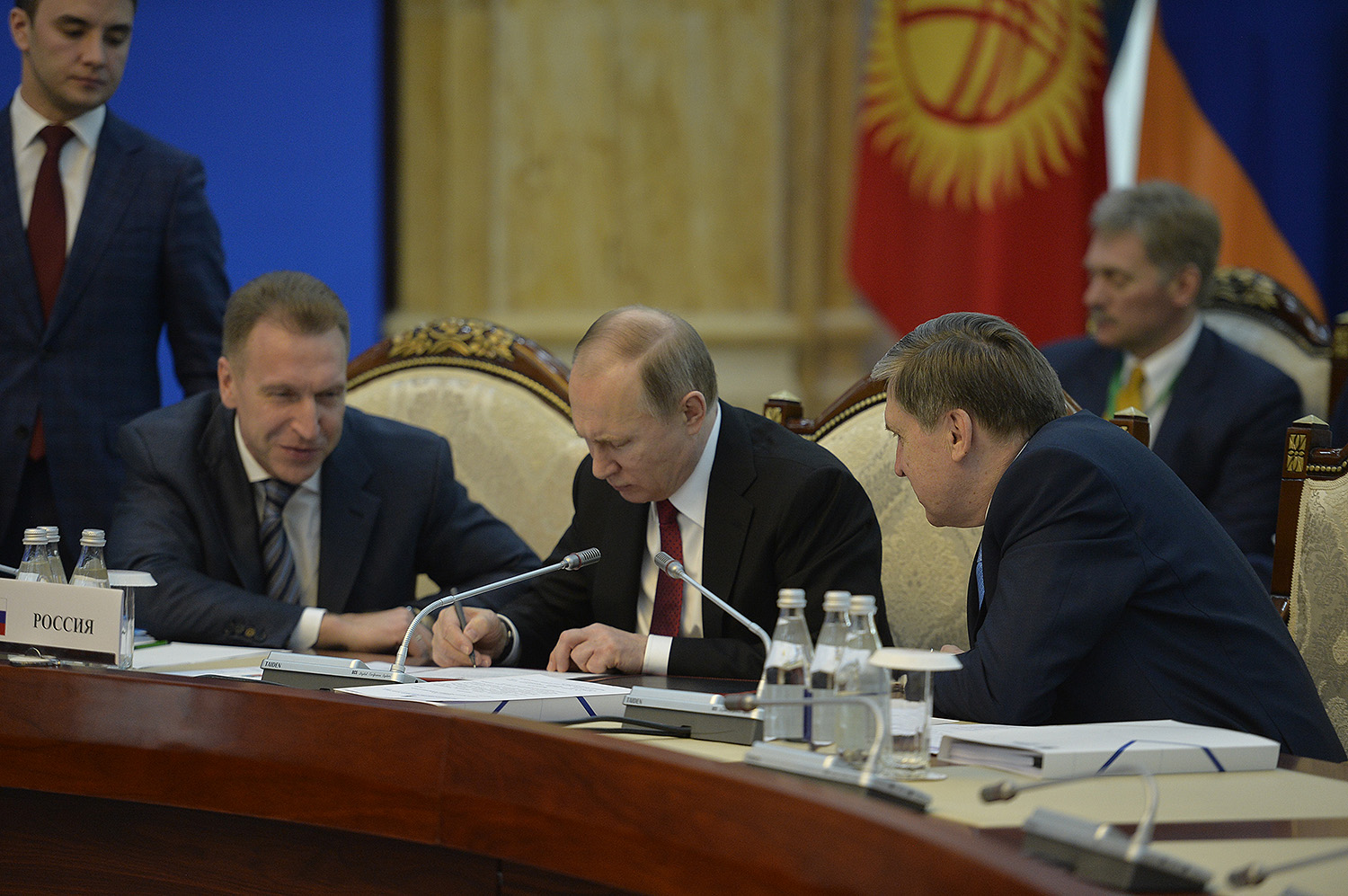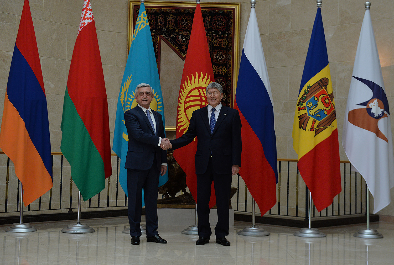 Աշխատանքային այցով Բիշկեկում գտնվող Նախագահ Սերժ Սարգսյանն այսօր ԵԱՏՄ անդամ մյուս պետությունների ղեկավարների՝ Բելառուսի Հանրապետության նախագահ Ալեքսանդր Լուկաշենկոյի, Ղազախստանի Հանրապետության նախագահ Նուրսուլթան Նազարբաևի, Ղրղզստանի Հանրապետության նախագահ Ալմազբեկ Աթամբաևի, Ռուսաստանի Դաշնության նախագահ Վլադիմիր Պուտինի և նիստին հրավիրված Մոլդովայի Հանրապետության նախագահ Իգոր Դոդոնի հետ մասնակցել է Եվրասիական տնտեսական բարձրագույն խորհրդի նիստին: Նիստին ներկա է եղել նաև Եվրասիական տնտեսական հանձնաժողովի կոլեգիայի նախագահ Տիգրան Սարգսյանը: