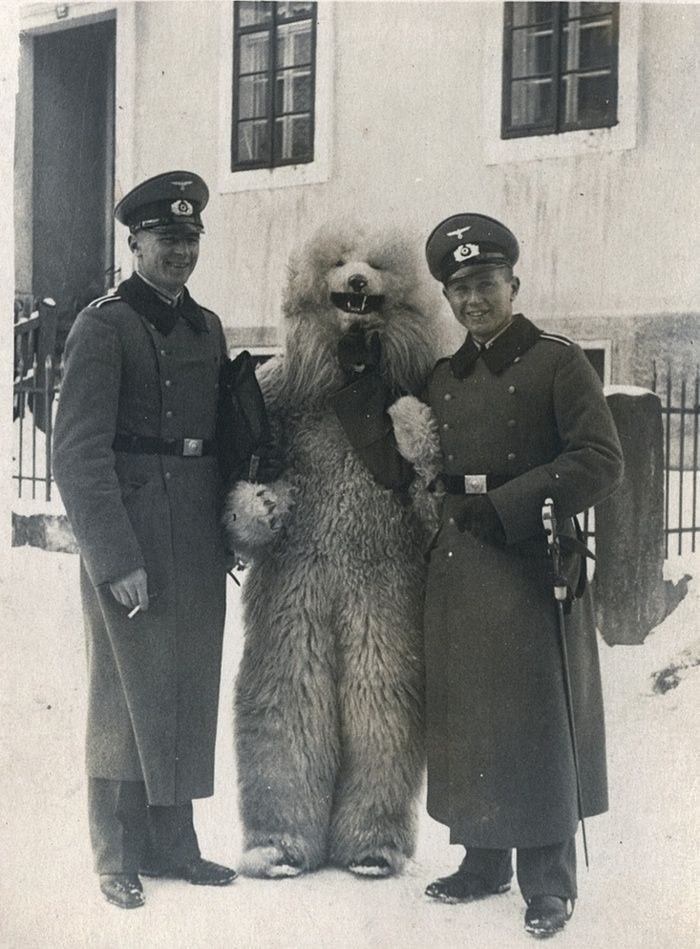 Այս նկարը զարհուրելի է դարձնում այն, որ այդքան մարդկանց ողբերգության պատճառ դարձած ու սարսափազդու Նացիստական կուսակցության անդամները այդքան ջերմ ժպիտներով ընկերական խաղում են արջի հետ։