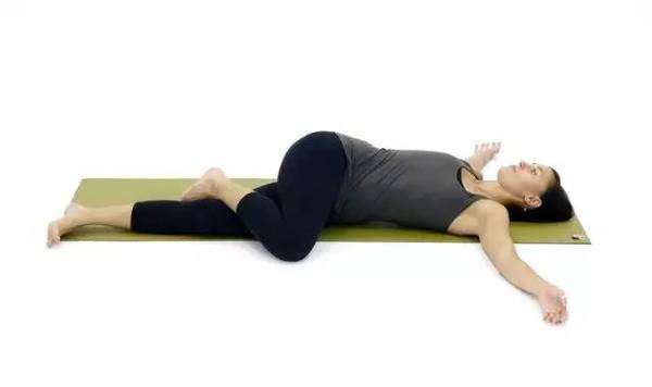 Մեջքի վրա պառկած ծունկը բարձրացրեք, թողեք ընկնի աջ կողմ: Կարող եք ոտքը կայունացնել ձախ ազդրը բռնելով աջ ձեռքով: Բայց միաժամանակ ձախ ձեռքը ձգեք դեպի ձախ և զգուշությամբ գլուխը դեպի ձախ շրջեք: Երկու ուսերը պետք է հնարավորինս թուլանան մակերևույթի վրա: Եվ շնչեք: Հետո դիրքը կրկնեք մյուս կողմով:
