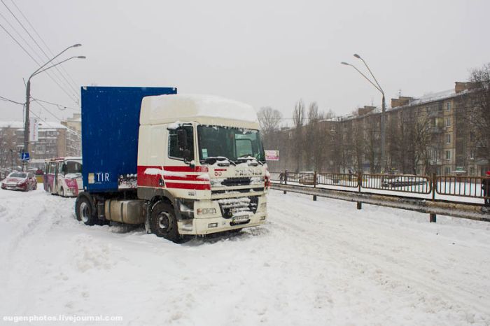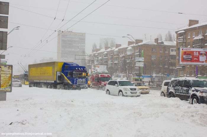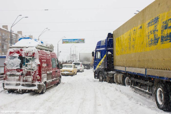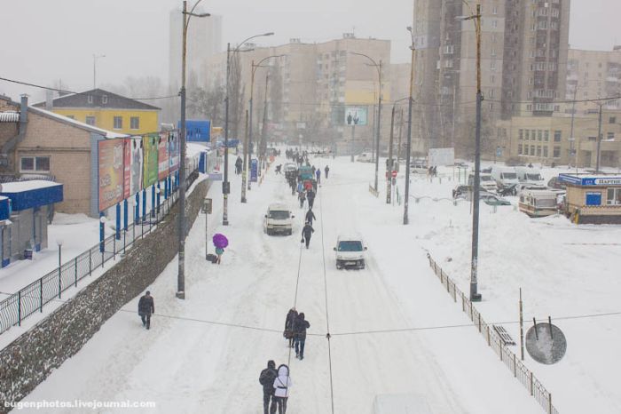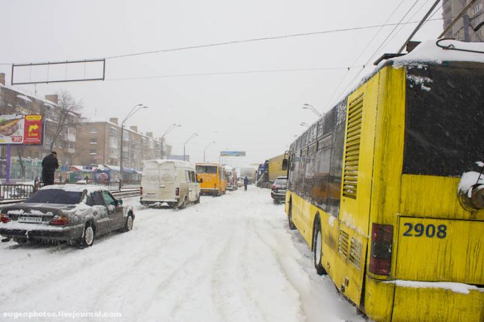 Ուկրաինայի մայրաքաղաքում արտակարգ դրություն հայտարարվեց: Մեկ օրվա ընթացքում 50 մմ ձյուն տեղաց (ամսական 47 մմ նորմայի դեպքում), որը կես մետր ձյան ծածկույթ է: