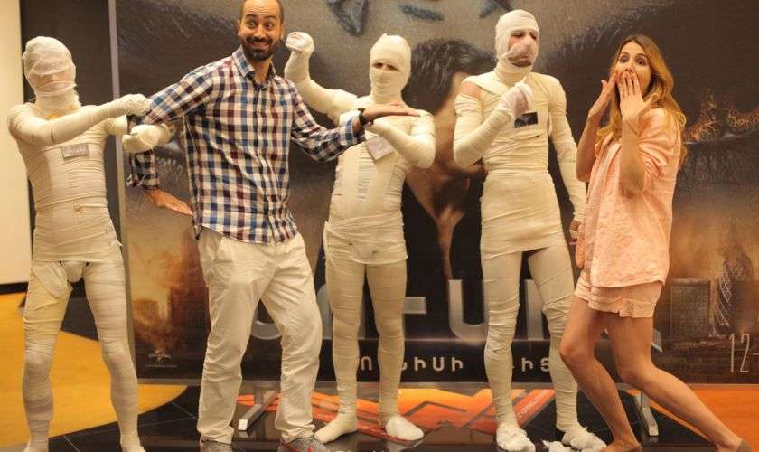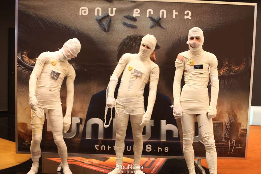 Երեկ Երևան Մոլում գտնվող Kino Park կինոթատրոնում կայացավ «Մումիա» ֆիլմի պրեմիերան: Կինոսերներին Kino Park-ի միջանցքում դիմավորեցին երեք մումիա, ովքեր, բացի վախեցնելուց, նաև լուսանկարվում էին կինոդիտմանը հրավիրված կինոմանների և կինոթատրոնի այլ այցելուների հետ: BlogNews.am-ը ևս ներկա էր պրեմիերային և ներկայացնում է հետաքրքիր դրվագները: