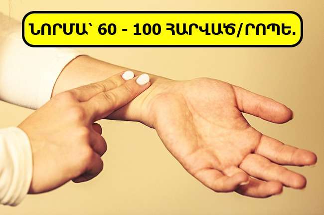 Լուռ սենյակում հանգիստ նստեք 5 րոպե, ապա ձեռքի 4 մատները դրեք մյուս ձեռքի դաստակի ներքին հատվածին։ Զգացեք ձեր զարկերակը, 1 րոպե ժամանակ պահեք և հաշվեք զարկերի քանակը։ 10 տարեկանից մեծ երեխաների և մեծահասակների համար նորմա է համարվում րոպեում 60-100 հարվածը։ Դրանից ավել կամ պակաս հարվածները ցույց են տալիս, որ դուք ճնշման հետ խնդիրներ ունեք, սակայն մի շտապեք ինքնուրույն ախտորոշել ձեր հիվանդությունը և դիմեք բժշկի խորհրդատվությանը։