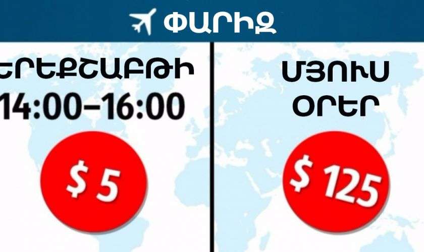 - Աշխատեք տոմսերը գնել երեքշաբթի օրերին ժամը 14:00-16:00 ընկած ժամանակահատվածում: