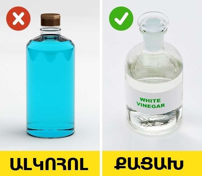 Շատ մարդիկ որպես մաքրող հեղուկ են օգտագործում ալկոհոլը, սակայն իրականում այն միայն վնասում է համակարգչին։ Լավագույն մաքրող հեղուկը ստանալու համար հավասար չափաբաժիններով իրար խառնեք ջուրն ու սպիտակ քացախը և թեթև խոնավեցնելով կտորը՝ մաքրեք համակարգիչը։