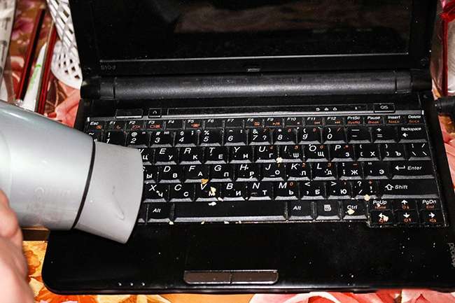 Ստեղնաշարում կուտակված կեղտն ու փոշին կարելի է հեշտությամբ մաքրել սովորական վարսահարդարիչի օգնությամբ։ Պարզապես անջատեք համակարգիչը և վարսահարդարիչը թեքության տակ պահեք ստեղնաշարի վրա. օգտագործեք բացառապես սառը օդը։