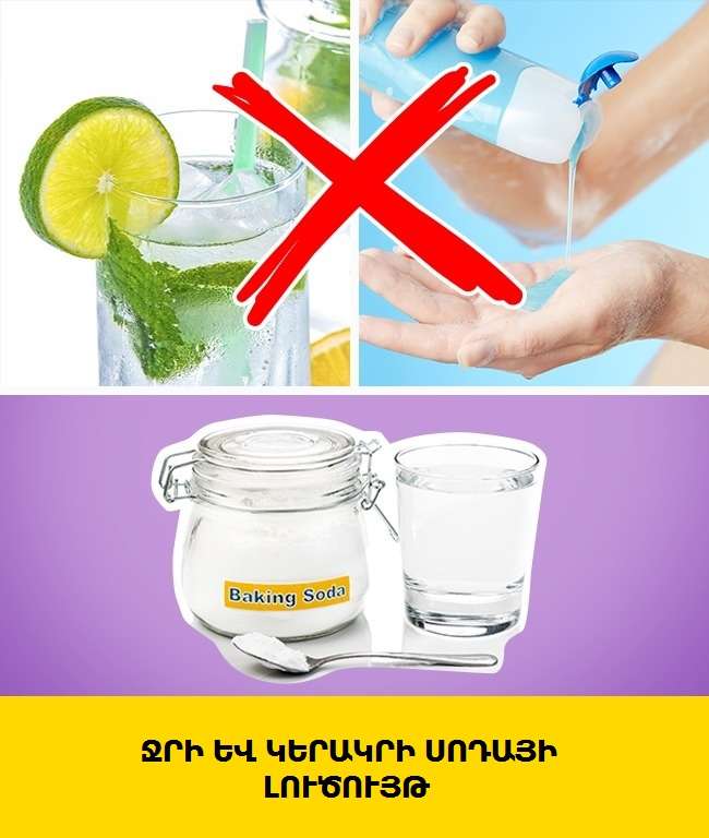 - Խառնեք կերակրի սոդան ջրի հետ և տրորեք մաշկը ստացված զանգվածով։ Հետո լվացեք մաշկը տաք ջրով։