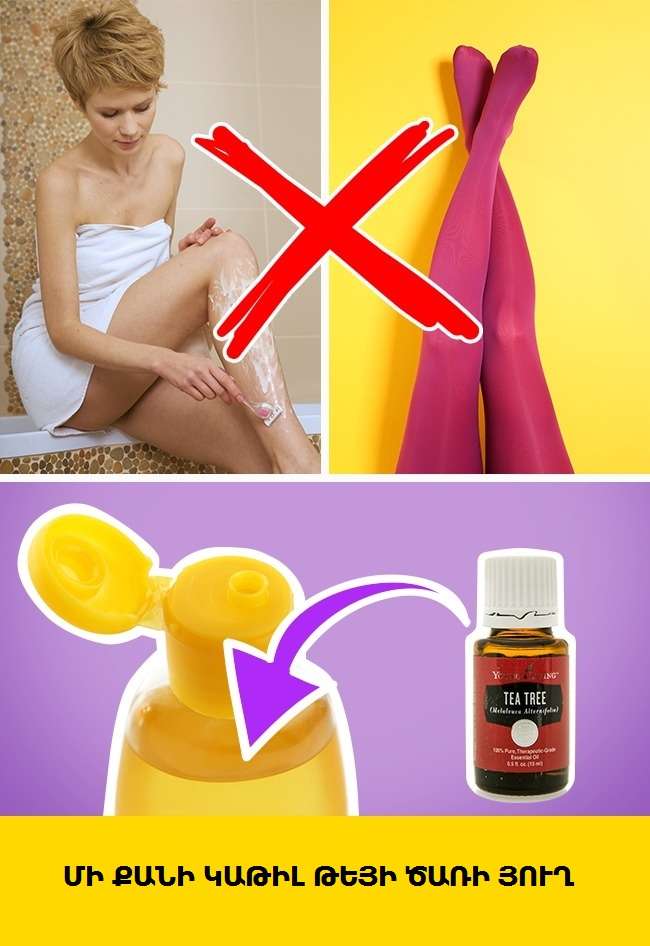 - 5-6 կաթիլ թեյի ծառի յուղ ավելացրեք լոգանքի գելին և սովորականի պես լոգանք ընդունեք։