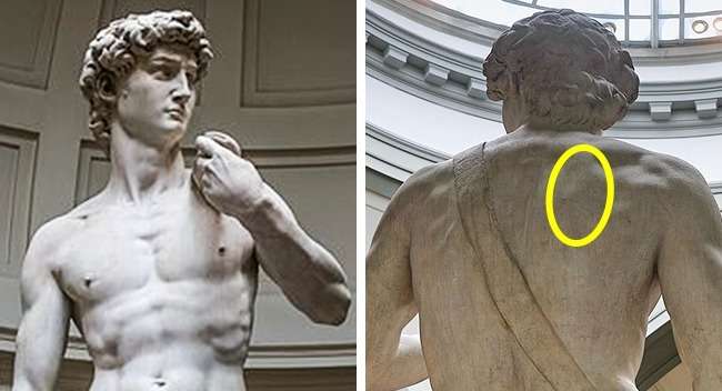 Հրեա թագավորի այս արձանը կերտվել է կորարյան մարմարի ամբողջական կտորից։ Եվ չնայած նրան, որ Միքելանջելոն հայտնի է իր կենսաբանական ճշգրտությամբ, Դավթի արձանը փոքրիկ թերություն ունի. ողնաշարի և աջ թիակի միջև ընկած տարածքում բացակայում է մեկ կարևոր մկան։ Քանդակագործին չի հաջողվել ընդգծել այդ մկանը այդ հատվածում քարի դեֆեկտի պատճառով։