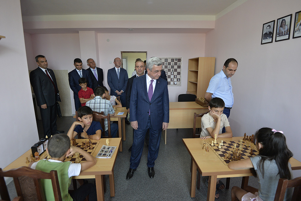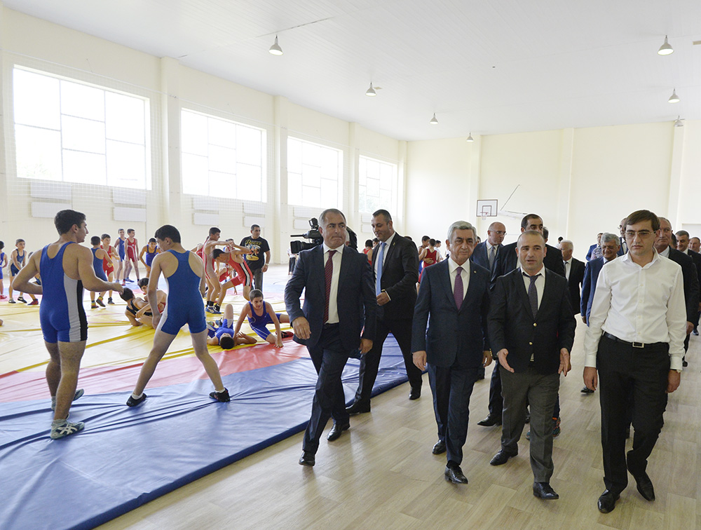 Նախագահ Սարգսյանը քաղաքային իշխանությունների, մարզաշխարհի ներկայացուցիչների, դպրոցի ղեկավարության և մարզիչների ու սաների ուղեկցությամբ շրջայց է կատարել մարզադպրոցում, ծանոթացել իրականացված աշխատանքներին, մարզումների համար ստեղծված պայմաններին և հնարավորություններին, զրուցել մարզաշխարհի ներկայացուցիչների ու դպրոցի սաների հետ: