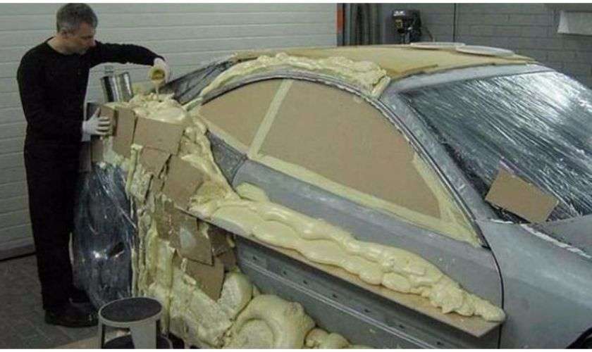 Մեքենայի համապատասխան հատվածները հերմետիկ ծածկելուց հետո փրփրասոսնձով նա հարթեցրեց բոլոր անհրաժեշտ մասերն ու խորդուբորդությունները։