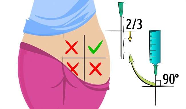Ինչպես է ճիշտ. ախտահանել ձեռքերն ու ներարկում կատարելու հատվածը: Ներարկում անելուց առաջ մտովի մկանը 4 մասի բաժանել: Արագ շարժումով ներարկել ասեղի ¾-ը վերին աջ անկյունում (ինչպես ցույց է տրված նկարում): Ներարկում կատարելուց հետո սպիրտում թրջած բամբակ դնել ներարկված հատվածին:Կայքում տեղ գտած մտքերն ու տեսակետները հեղինակի սեփականությունն են և կարող են չհամընկնել BlogNews.am-ի խմբագրության տեսակետների հետ: