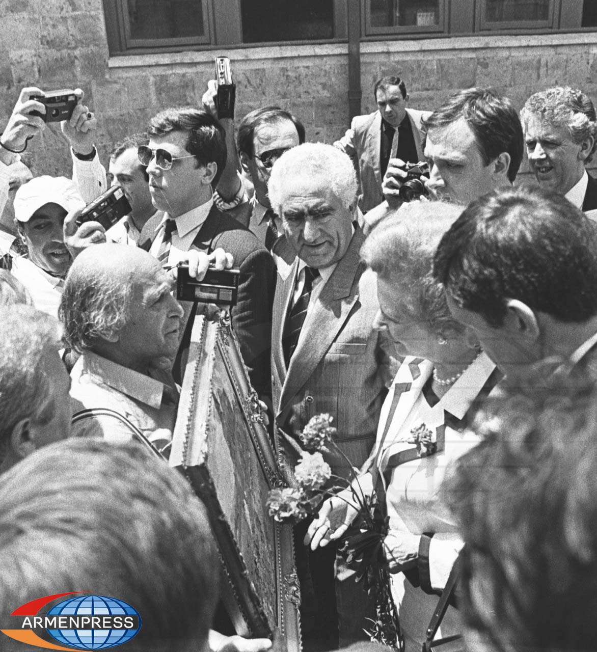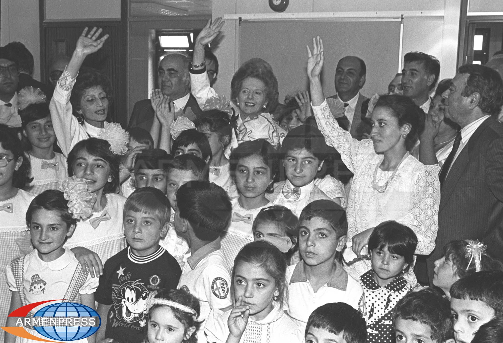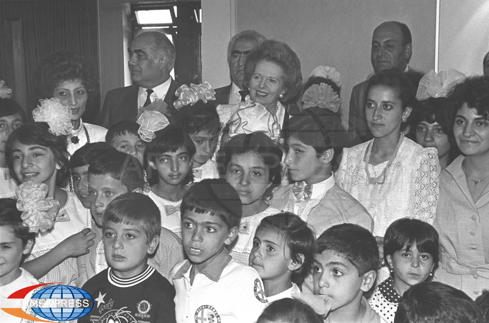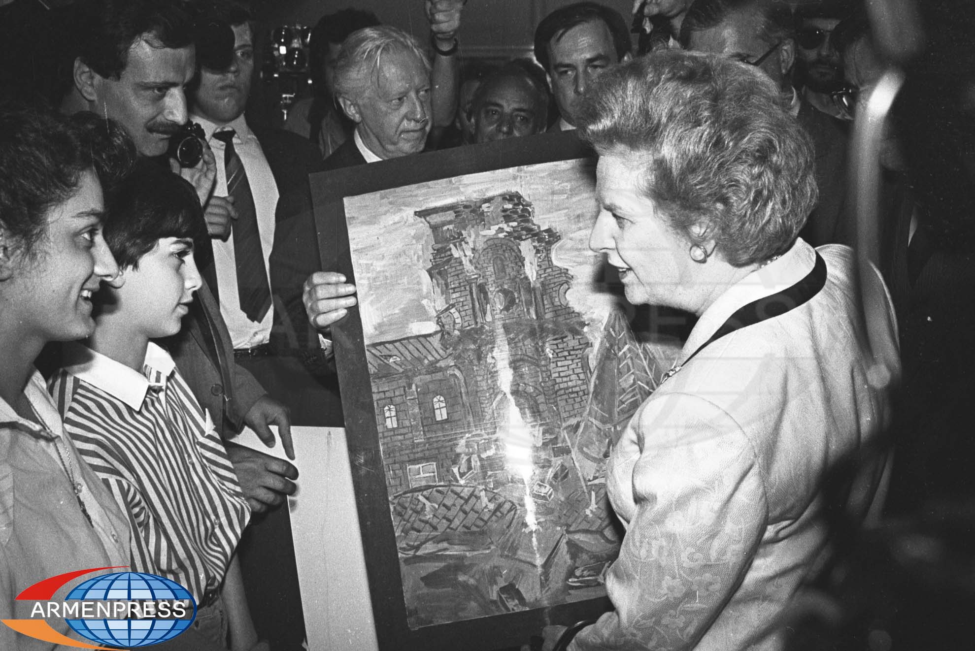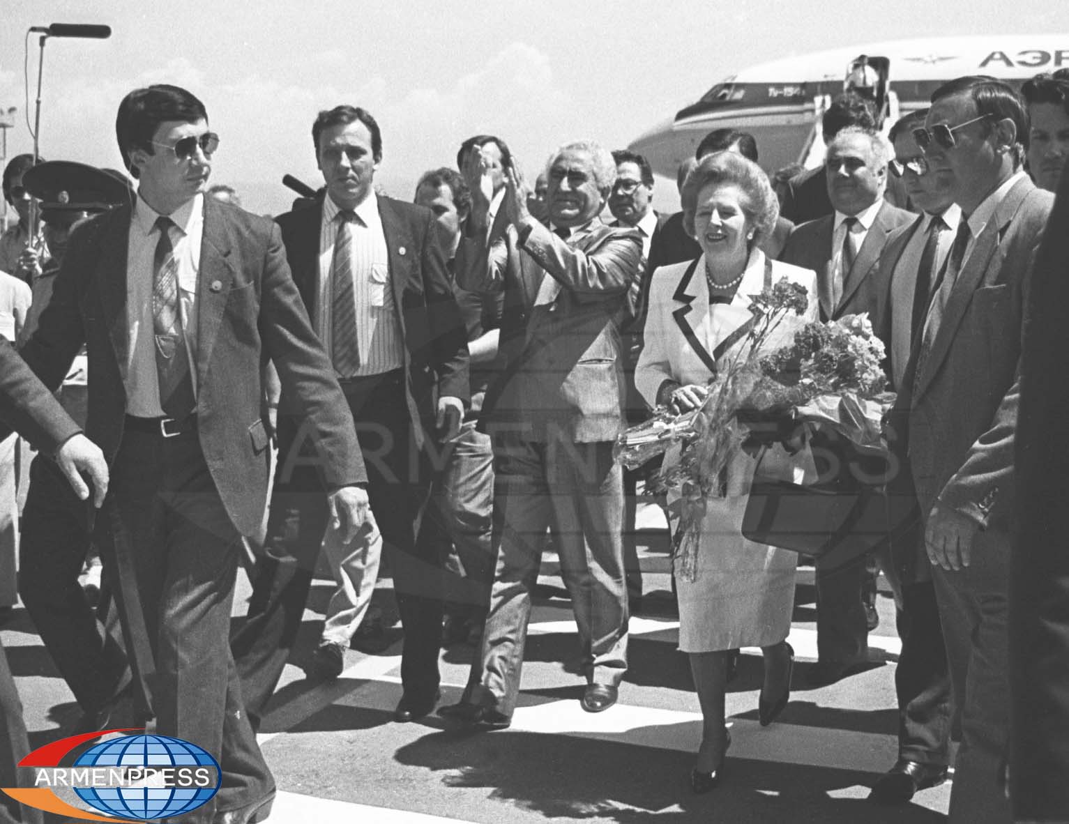 Մեծ Բրիտանիայի միակ կին վարչապետ Մարգարետ Թետչերը 1990 թվականի հունիսին Խորհրդային Միություն կատարած այցի շրջանակներում առաջին ու միակ այցն է կատարել Հայաստան` Լենինական (այժմ` Գյումրի): «Երկաթե տիկնոջ»` Լենինական կատարած այցը լայնորեն լուսաբանել է «Արմենպրես» գործակալությունը` նաեւ լուսանկարներով պատմությանը փոխանցելով «երկաթե տիկնոջ» այցի մանրամասները: