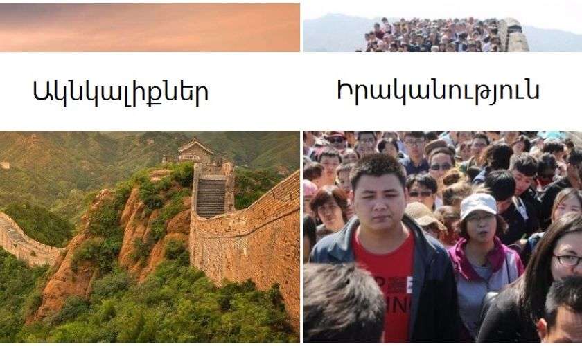 Ահա մի քանի նկար, որ ներկայացնում են զբոսաշրջիկների ակնկալիքներն ու իրականությունը։