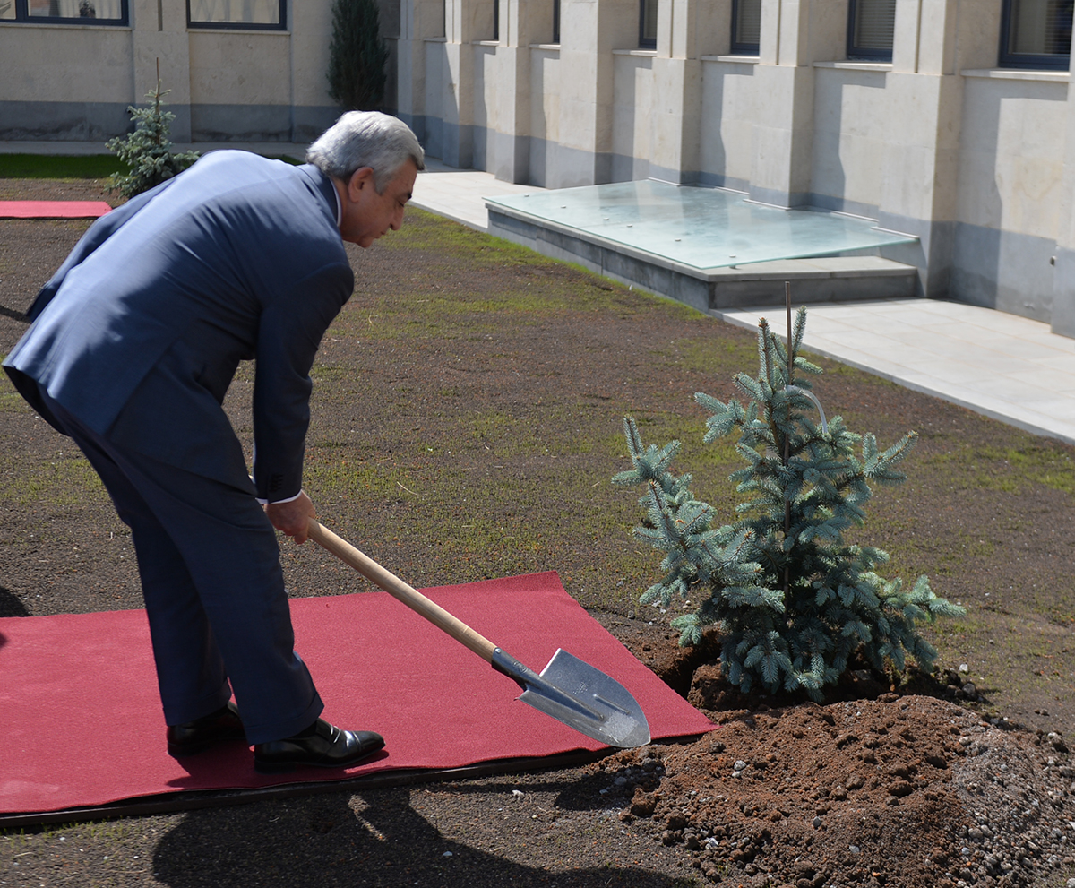 Հանրապետության Նախագահը շրջայց է կատարել նորաբաց դպրոցում, ծանոթացել իրականացված աշխատանքներին և ուսումնառության համար ստեղծված պայմաններին, որից հետո մասնակցել է դպրոցի բակում կազմակերպված ծառատունկին: