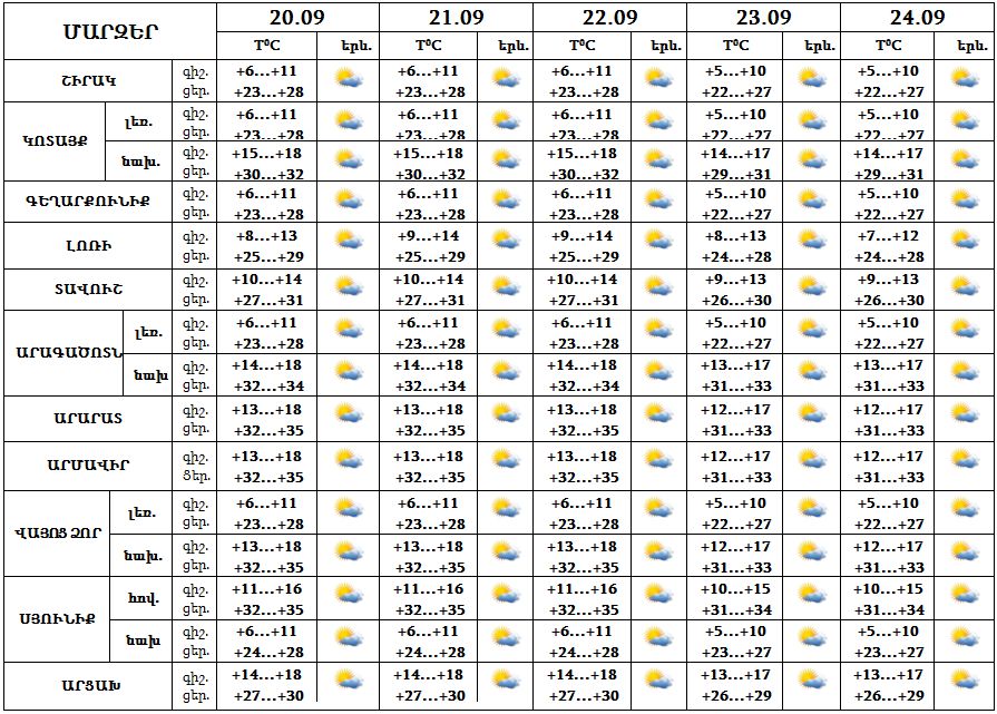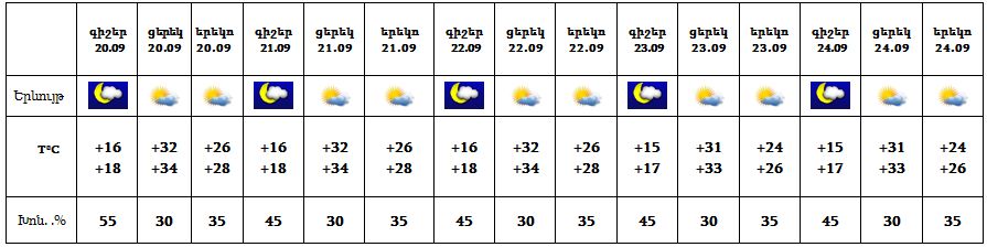 Հանրապետության տարածքում սեպտեմբերի 20-24-ը սպասվում է առավելապես առանց տեղումների եղանակ: