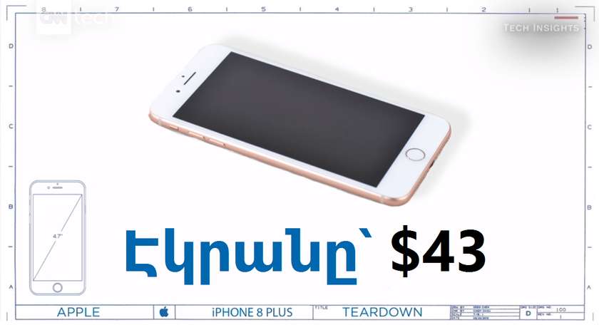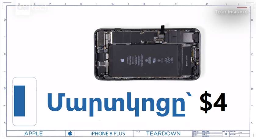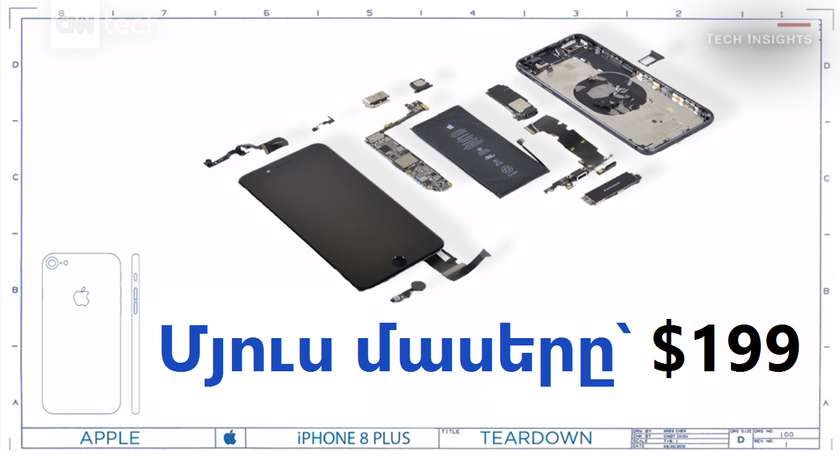 CNN tech-ը մանրամասն ներկայացրել է, թե iPhone 8 Plus-ի յուրաքանչյուր մասն ինչ արժե, այսինքն՝ թե որքան գումար է պահանջվել Apple-ից՝ պատրաստելու նշված սմարթֆոնը։