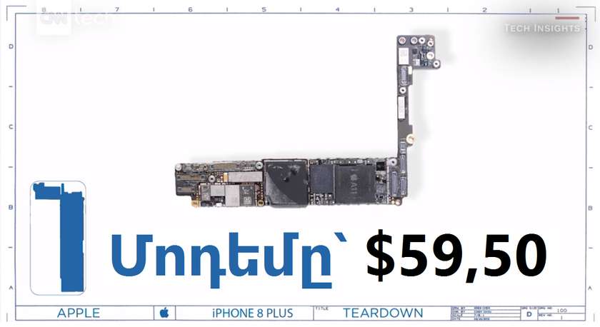 Apple-ի պաշտոնական կայքում 256GB տարողունակությամբ iPhone 8 Plus-ն արժե 949 ԱՄՆ դոլար, սակայն պարզվում է՝ դրա ինքնարժեքը շատ ավելի քիչ է, քան իրական գինը։