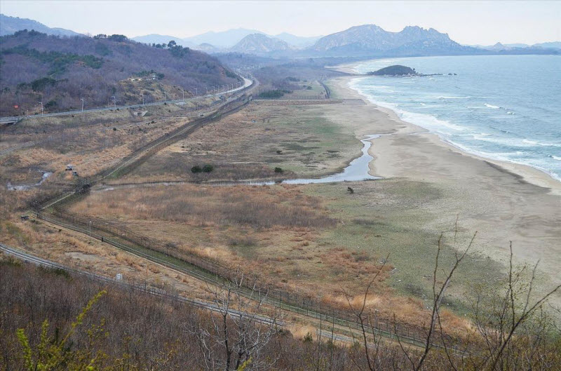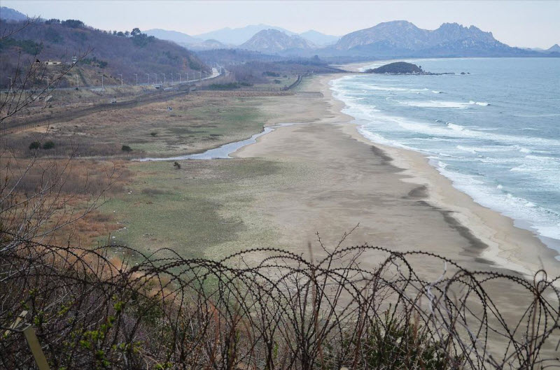 Երկու պետությունների միջեւ սահմանը ձգվում է համարյա 300 կմ: 1953 թ. Կորեական պատերազմի արդյունքում կողմերը տարածքներ (քաղաքական նշանակության տարածքներ, այլ ոչ աշխարհագրական) փոխանակեցին. ԿԺԴՀ ստացավ 38-րդ զուգահեռականից հարավ գտնվող արեւմտյան հատվածի մի մասը, իսկ հարավցիները ստացան 38 -րդ զուգահեռականից հյուսիս գտնվող արեւելյան հատվածի մի մասը: Մենք կդիտենք Հարավային Կորեայի ամենահյուսիսային կետի` Hyeonnae-myeon (տես. Google Maps) մոտ գտնվող սահմանը: