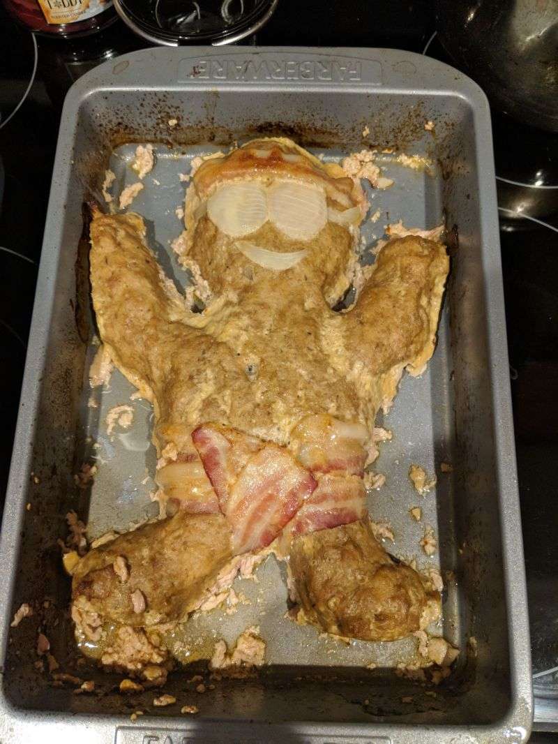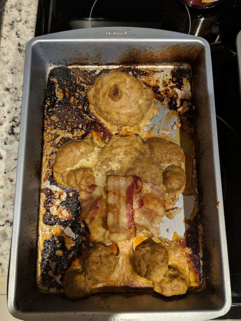 Ինչ-որ անհայտ խոհարար որոշեց որդու ծննդյան օրը մսից օրիգինալ ուտեստ պատրաստել երեխաների համար։ Արդյունքը բավական զզվելի էր ստացվել, ինչև ևս մեկ անգամ փաստում է, որ երեխայի ծննդյան օրը ավելի լավ է սովորական տորթ թխել։